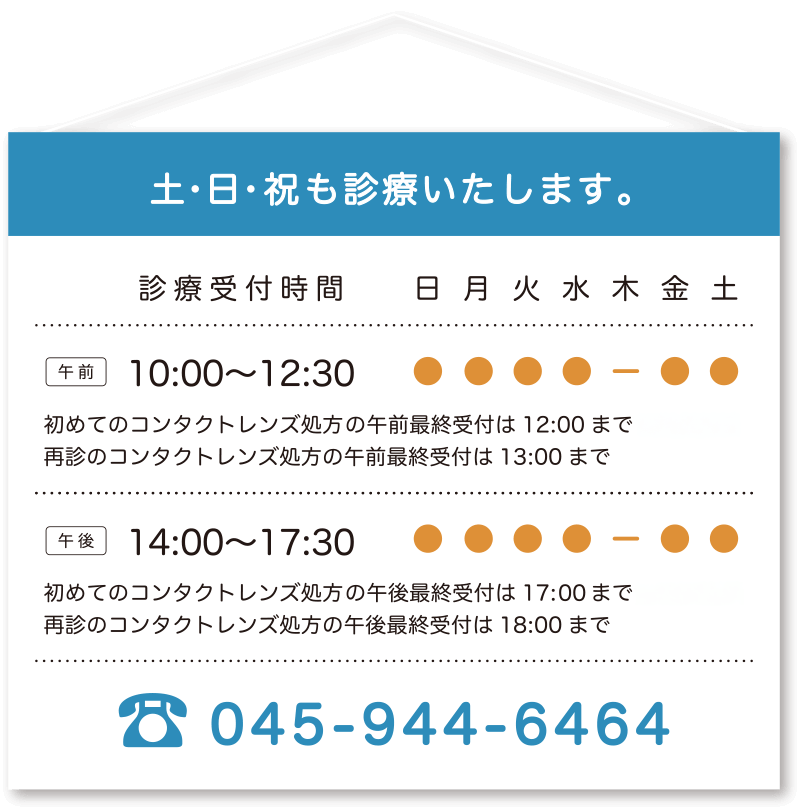 コンタクトレンズ初めての方 10:00~12:00 14:00~17:30